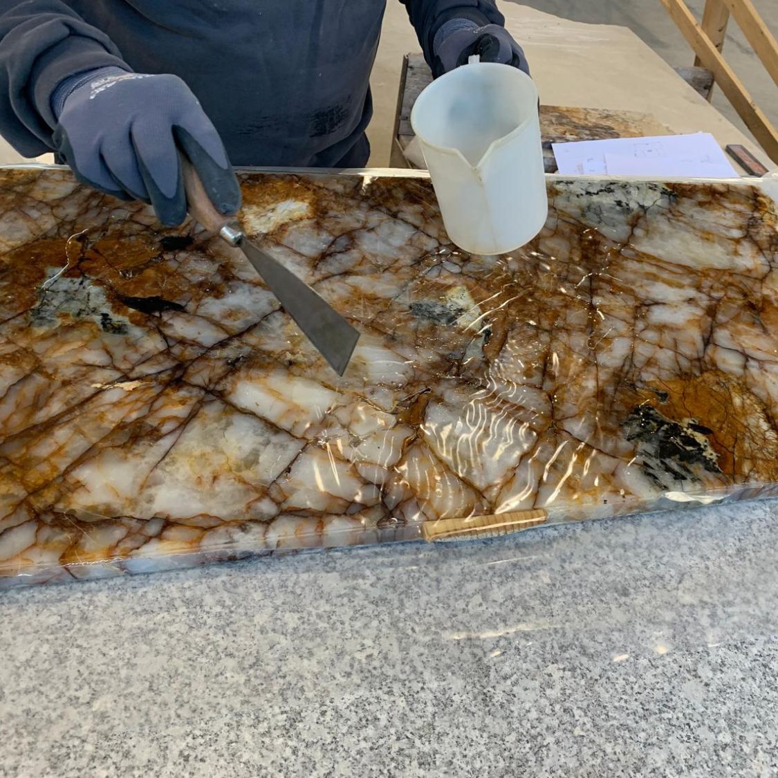 È possibile intervenire con levigature o lucidature che eliminano lo strato superficiale danneggiato e permettono di ripristinare l’aspetto estetico e le caratteristiche funzionali del materiale.