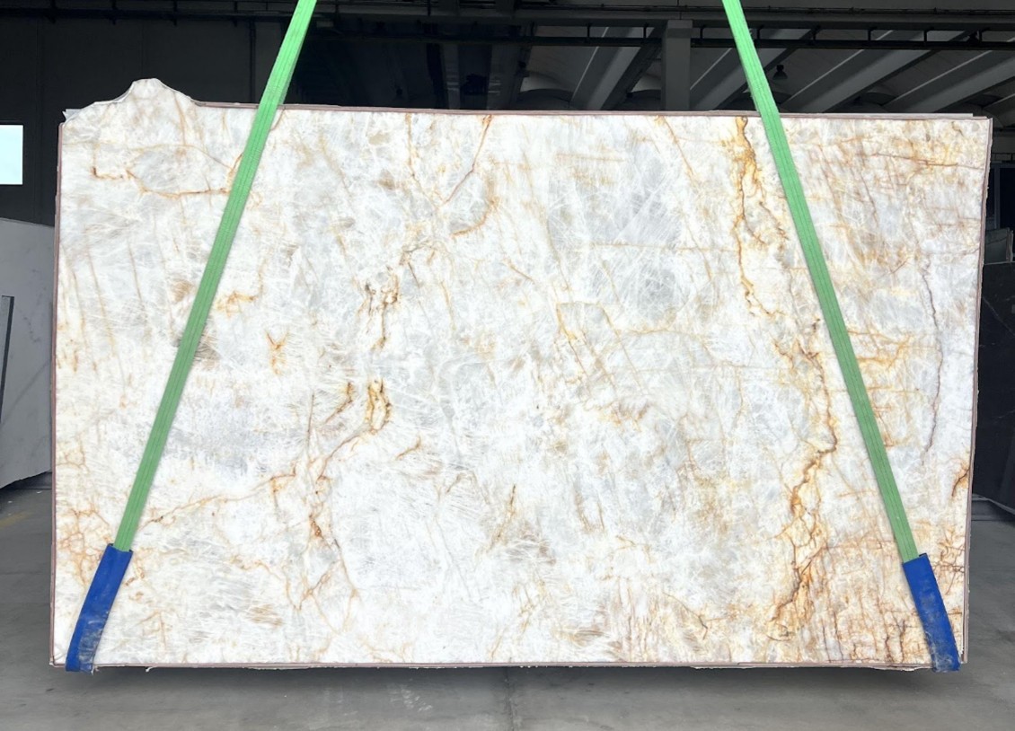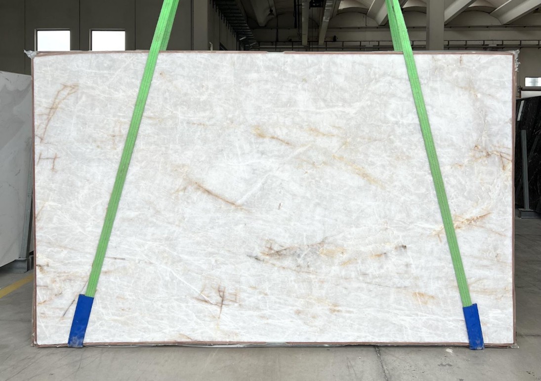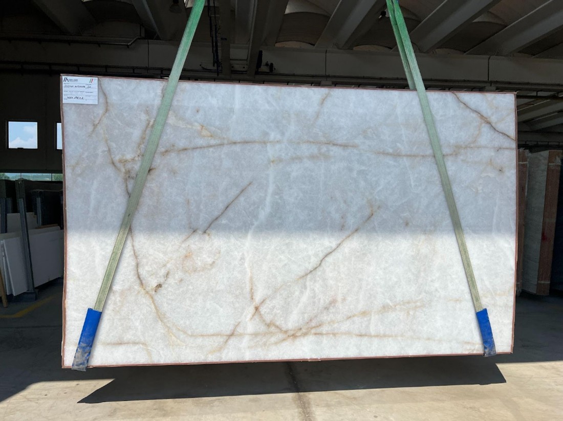 Quarzite cristallina brasiliana dalla tonalità di bianco cristallino puro con leggere venature giallo ramate.